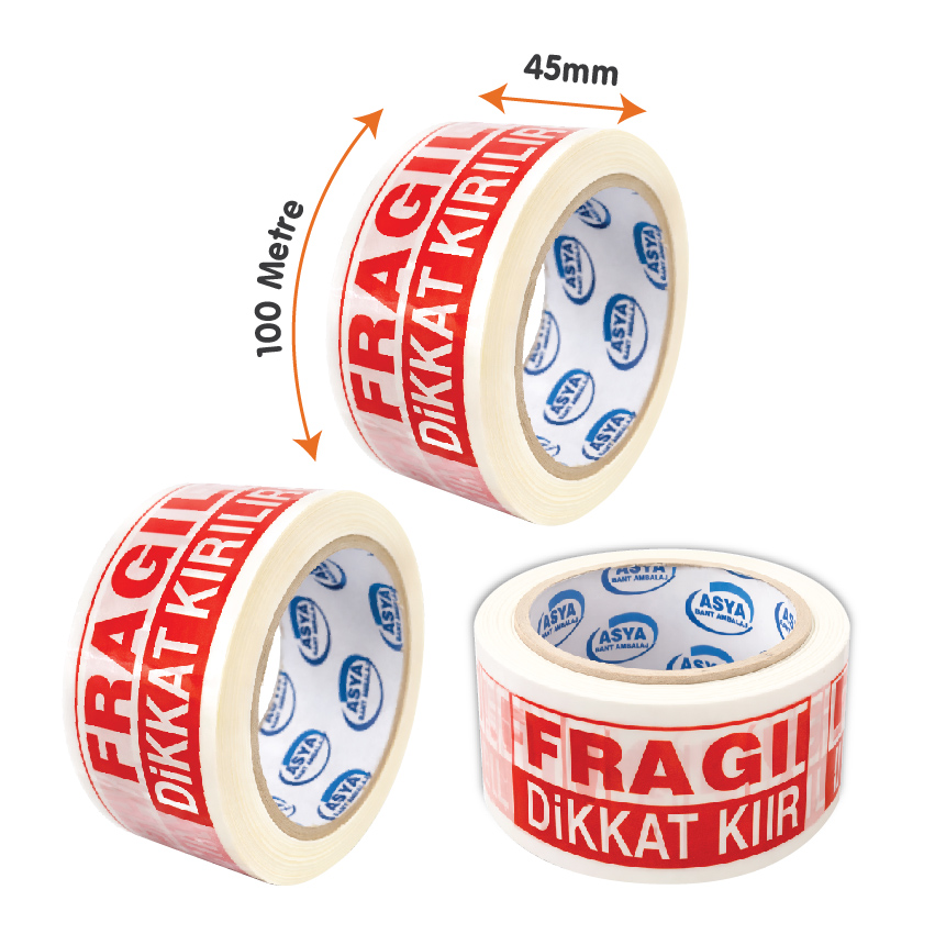 45x100 Dikkat Kırılır Koli Bandı Hotmelt Beyaz ile paketlemede kontrol sizde olsun.