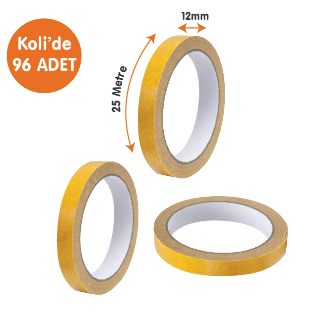 1 koli içerisinde 96 adet bulunur ve toptan çift taraflı bant alımları için ekonomik çözümdür.