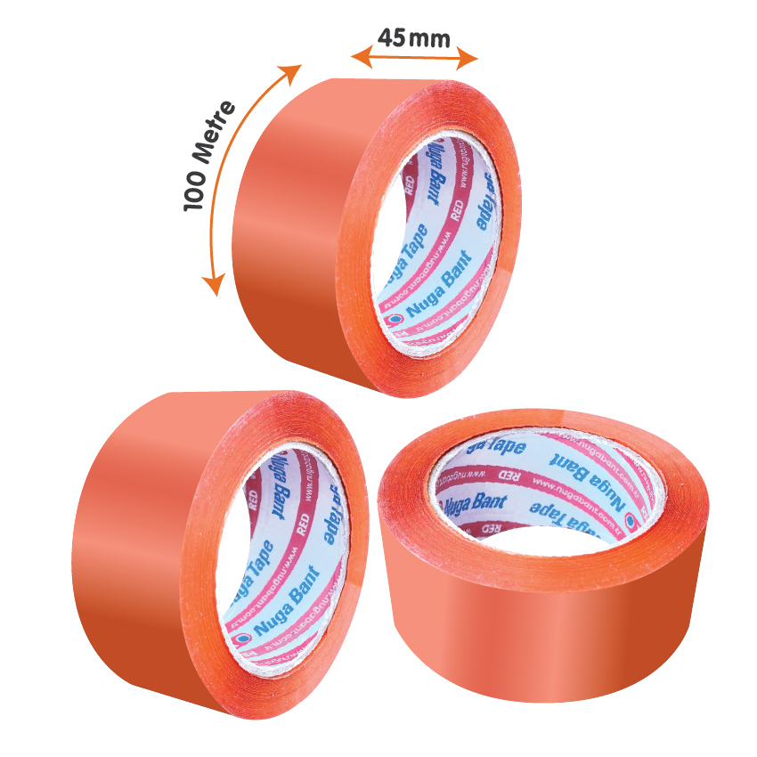 يتميز شريط Nuga البرتقالي بقياس 45 مم × 100 م بلونه الواضح وقوته في التثبيت. يحتوي الكرتون على 84 بكرة ويعد مثاليًا للتغليف المرمّز، والعلامات التجارية، والاستخدامات اللوجستية.