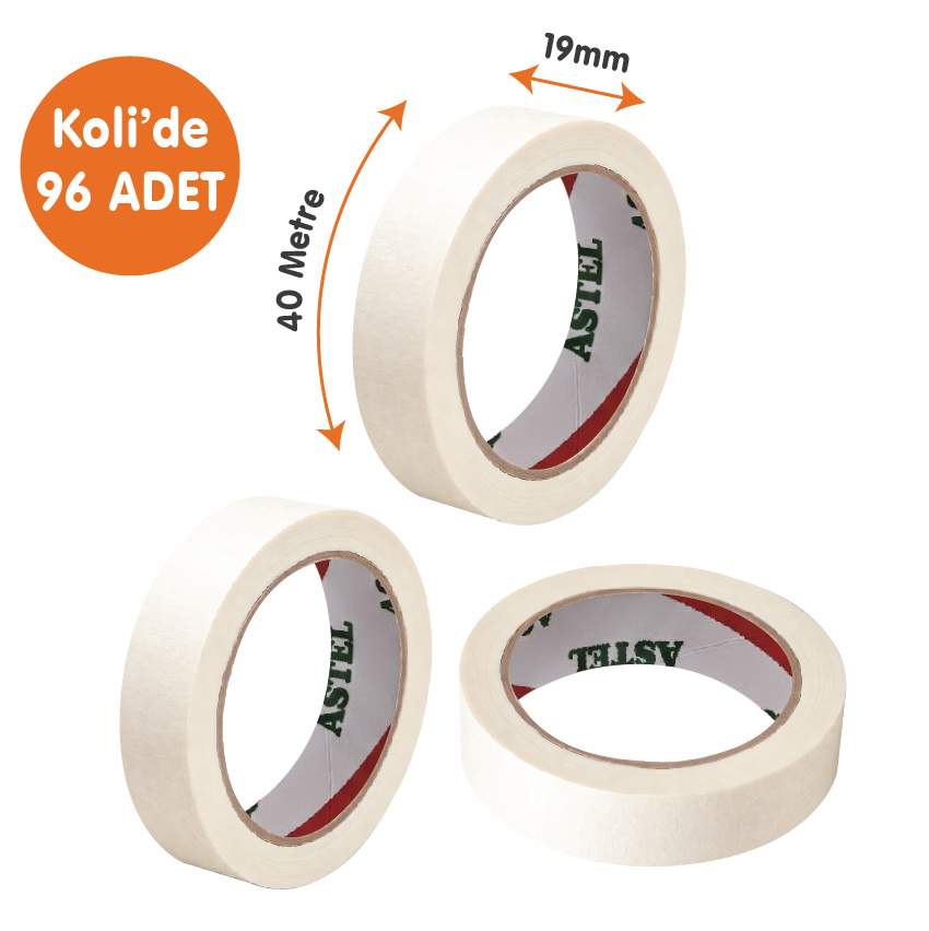 En ince detaylarda bile profesyonelliğinizi konuşturun. Astel 19x40 maskeleme bandı için Türkiye'nin en iyi toptan fiyatları Bantpazar.com'da. 96 adetlik koli fırsatını kaçırmayın, stok maliyetinizi düşürürken kalitenizi artırın.