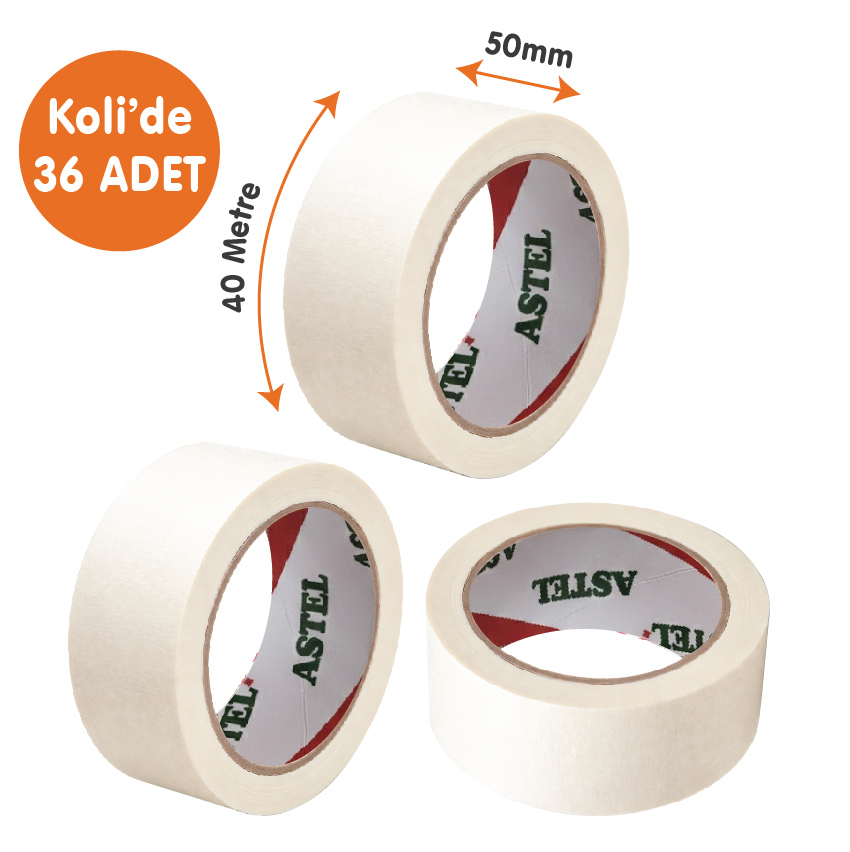Profesyonel boya ve badana uygulamalarında temiz işçilik çıkarmanın sırrı doğru maskeleme yapmaktır. Türkiye’nin güvenilir markası Astel, 50mm genişliğindeki kağıt maskeleme bandı ile boyanın taşmasını engeller ve keskin hatlar oluşturmanızı sağlar. Bantpazar.com avantajlarıyla sunduğumuz 1 koli (36 adet) toptan paket, şantiyeler, mobilya atölyeleri ve profesyonel boyacılar için en ekonomik çözümdür.
